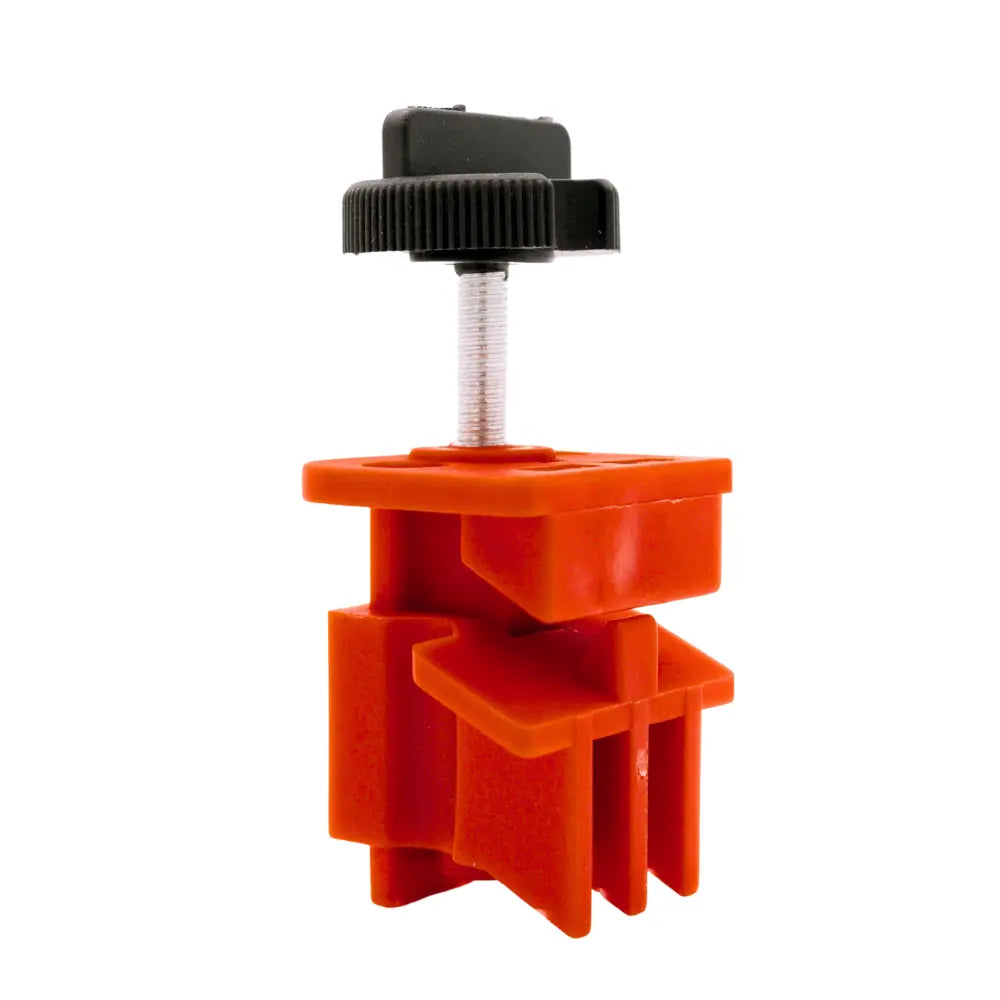 TRADESAFE Universal Circuit Breaker Lockout is designed to secure single, double, or triple pole breakers with tie bar handles up to 7/8" thick. Constructed from durable, non-conductive nylon with a stainless steel thumbscrew, this lockout device is built for impact resistance and reliable LOTO performance.