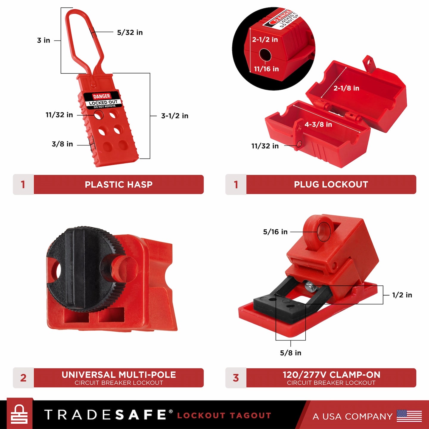 Los productos TRADESAFE se fabrican teniendo en cuenta los requisitos para los dispositivos de bloqueo y etiquetado. Estos son los requisitos conforme a la Norma OSHA 1910.147: