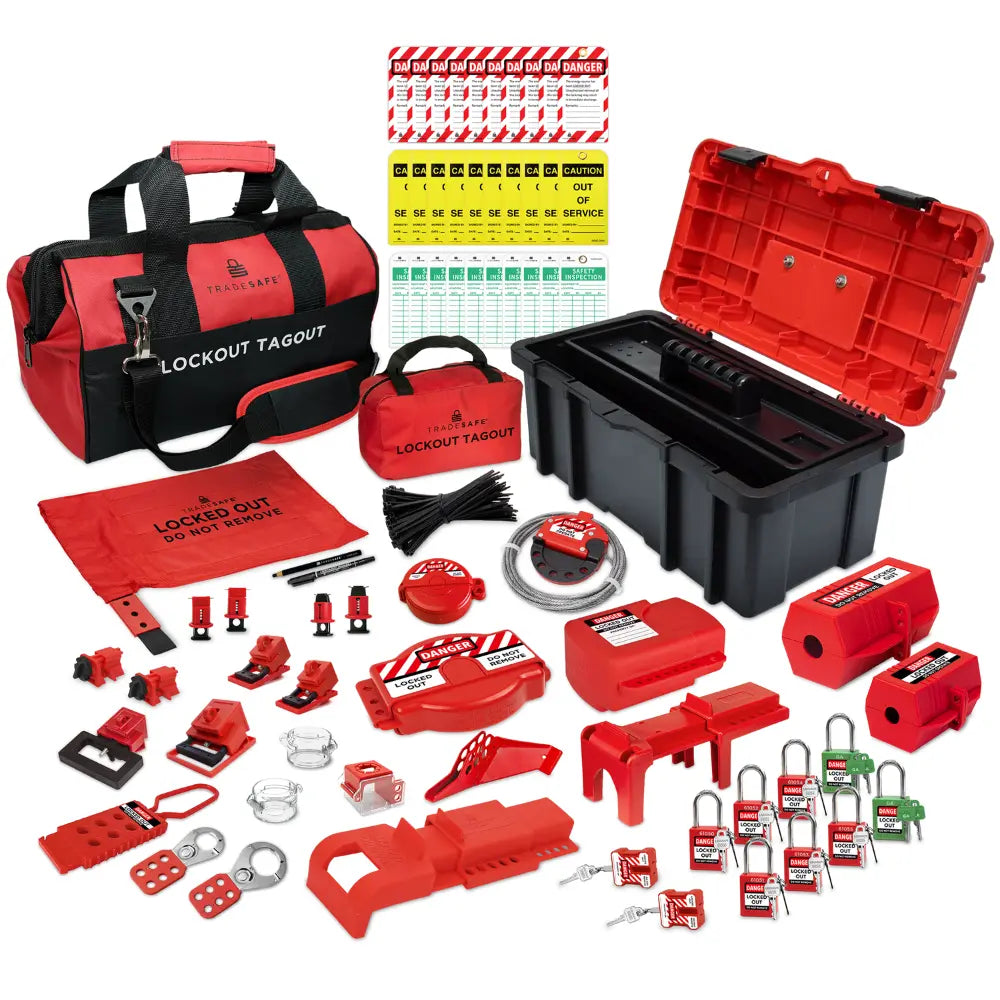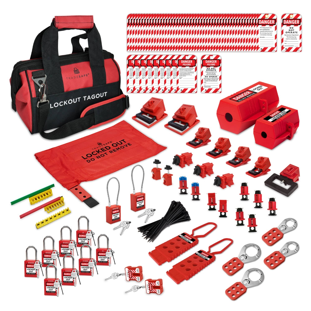 For facilities that demand comprehensive energy control solutions and efficient mobility, TRADESAFE offers lockout kits with extra-large capacity tool bags. This collection includes three specialized variants: