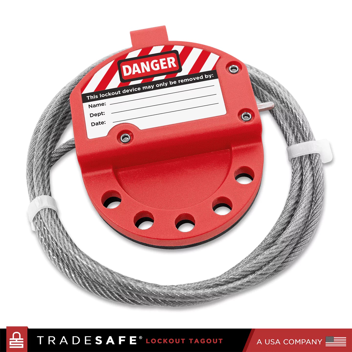 TRADESAFE lockout cable, with its flexible 6 ft long and 5/32” diameter stainless steel cable, offers unparalleled adaptability for securing multiple breakers, valves, and challenging-to-access panels. Its dynamic design enables easy adjustments to achieve the optimal length, ensuring a tight and secure fit for even the most intricate lockout points. Furthermore, this adjustable cable lock can accommodate up to five safety padlocks, providing a comprehensive solution for individual and group lockout/tagout scenarios.