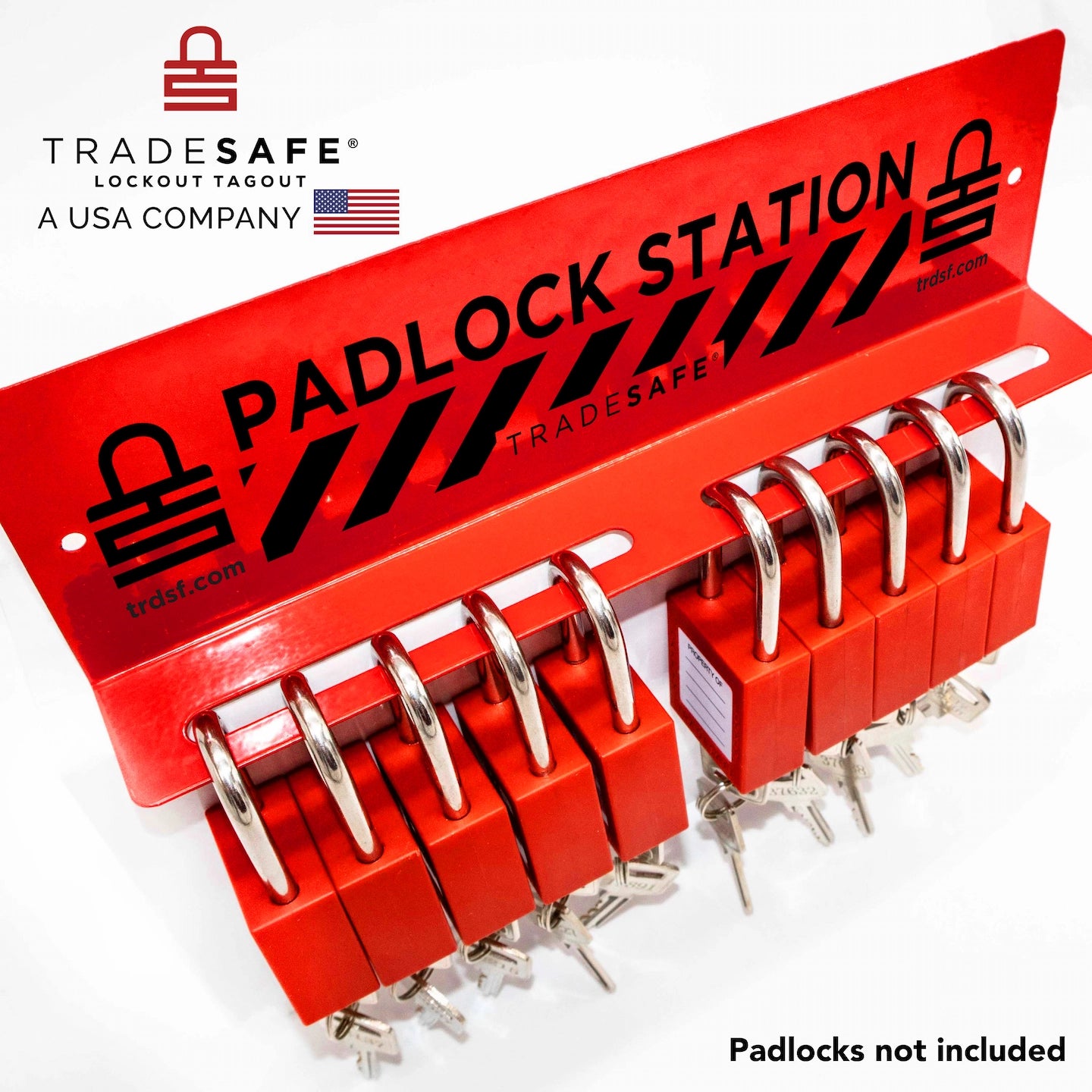 Prevent the loss of lock out tag out padlocks and keep the workplace organized with TRADESAFE’s padlock lockout station. Built with tough carbon steel material, this padlock lock out station is made to last and can help improve the execution of lockout tagout procedures in accordance with OSHA standards.